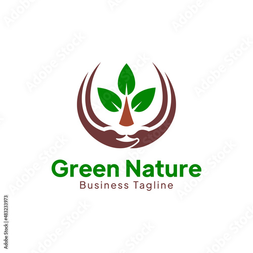 Green Nature Logo Design Template suitable for company logo with both hands hugging a tree