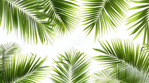 Green palm leaves on white background.