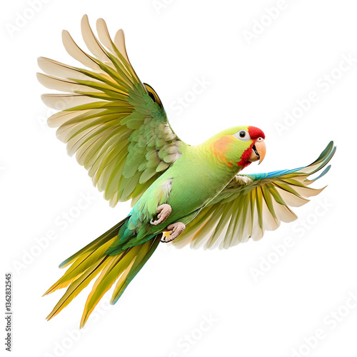 Green Parrot in Flight Wings Spread Wide Colorful Feathers