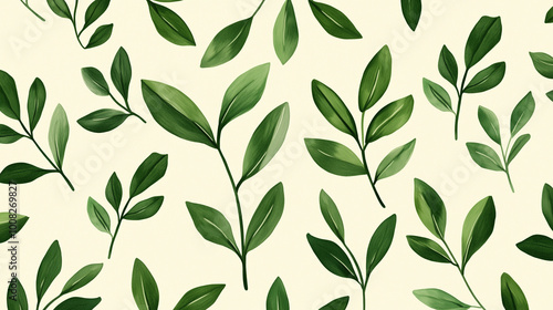 Green plant and leafs pattern. Pencil, hand drawn natural illustration. Simple organic plants design. Botany vintage graphic art. 4k wallpaper, background. Simple, minimal, clean design