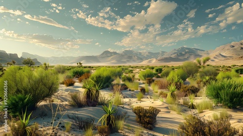 Green Plants in the Desert, Highlighting Resilience and Natural Beauty in Harsh Environments