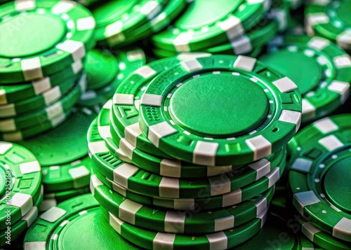 Green Poker Chips for Casino Games, Gambling, and Betting with a Classic Gaming Aesthetic Design