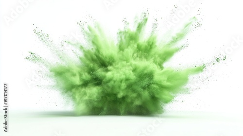 Green Powder Explosion on White Background