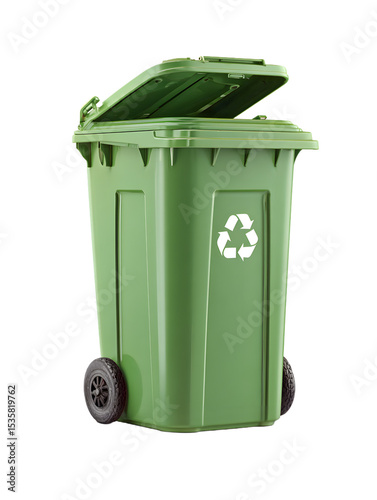 Green Recycling Bin with Open Lid Waste Disposal Environmental Sustainability, transparent background