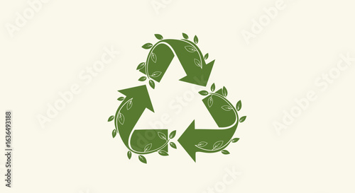 Green recycling symbol adorned with fresh leaves symbolizing eco-friendly practices and sustainability for a healthier planet.