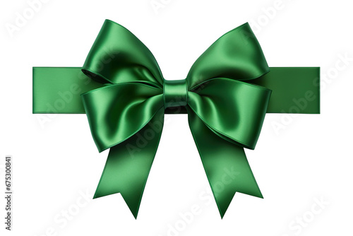 Green ribbon and bow with christmas theme isolated against transparent white background