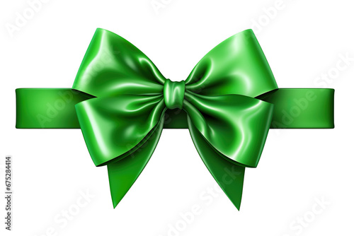 Green ribbon and bow with christmas theme isolated against transparent white background PNG