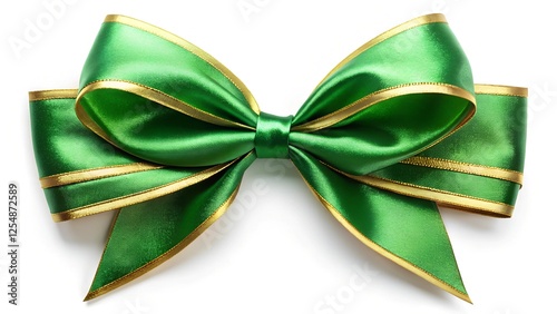 Green Ribbon And Bow with Gold isolated Against a White Background