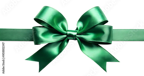 green ribbon bow isolated on white background. PNG transparent
