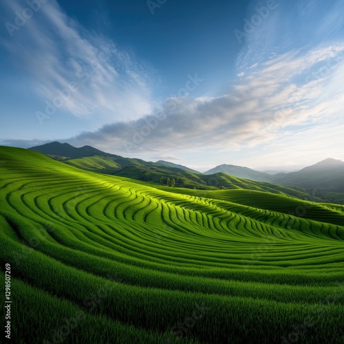 green, landscape, scenery, nature, agriculture, field, rural, countryside, hill, mountain, sky, cloud, beautiful, cultivation, farming, terrace, environment, fresh, growth, harvest, pattern, asia, scenic, view, plant