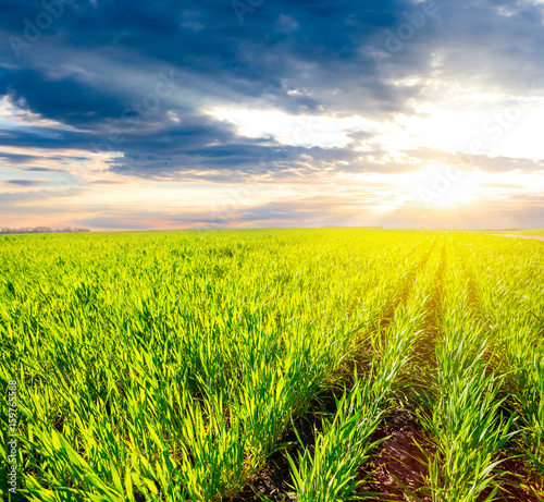 green, grass, meadow, field, pasture, country, village, horizon, boundless, rural, agricultural, bright, earth, forever, lush, plain, vista, sky, blue, cloud, cloudscape, sunset, sunrise, sun, light, sunshine, sunlight, ray, glow, solar, evening, landscape, scene, panoramic, nature, relaxation, quiet, silent, rest, idylli, tranquil, dramatic