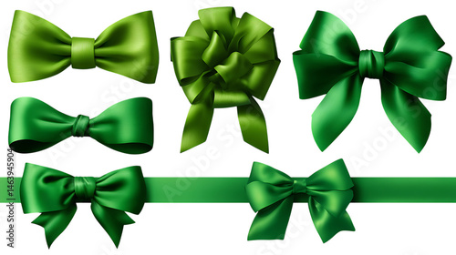 Green Satin Ribbon Bows Gift Wrapping Decoration Design Elements Holiday Bows Festive Bows Vector Illustration