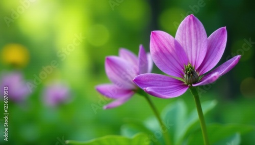 Green stem with purple petals in a botanical garden, flowers, horticulture, botany