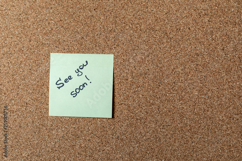 green sticker on brown table. color sticker, motivational, quote and words, note, message