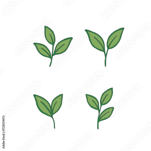Green Tea Leaves Vector Illustration. Minimal Tea Leaf Botanical Design. Tea Sprout Leaves Outline Vector. Fresh Herbal Tea Leaves Collection. Green Tea Leaf Illustration.