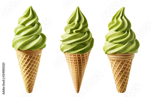 matcha, ice, cream, cone, green, tea, waffle, isolated, transparent, background, dessert, glacé, sweet, treat, swirled, creamy, delicious, cold, snack, japanese, favor, dairy, refreshing, summer, tasty, indulgent, crispy, sugar, epicure, artisanal, exotic, unique, handcraft, swirl, fresh, organic, natural, vibrant, smooth, rich, elegant, trendy, aesthetic, food, presentation, ice cream, ice cream, white