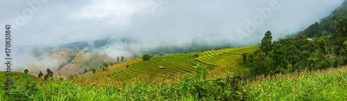 Green Terraced Rice Field in Pa Pong Pieng , Mae Chaem, Chiang Mai, Thailand