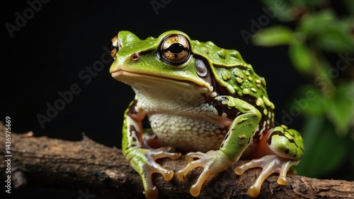 Green Tree Frog on Branch – Nocturnal Amphibian in Natural Habitat