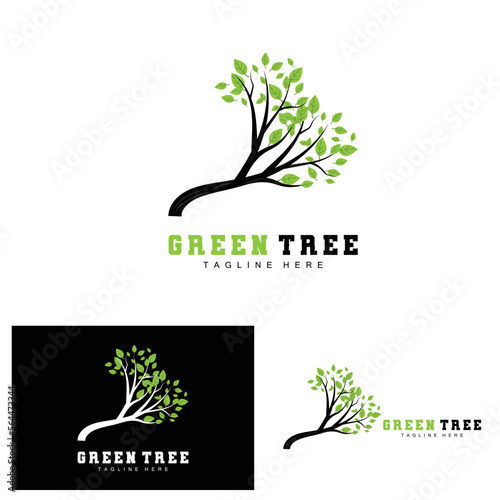 Green Tree Logo Design, Bonsai Tree Logo Illustration, Leaf And Wood Vector