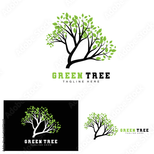 Green Tree Logo Design, Bonsai Tree Logo Illustration, Leaf And Wood Vector