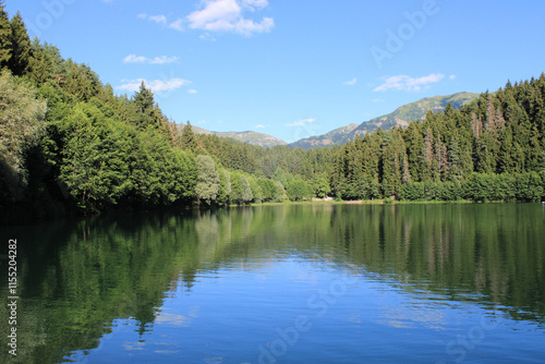 lake, water, landscape, river, nature, sky, forest, summer, tree, tree, duck pond, green, mountain, grass, cloud, mirror, outdoors, blue, cloud, travel, scenery, park, wood, beautiful