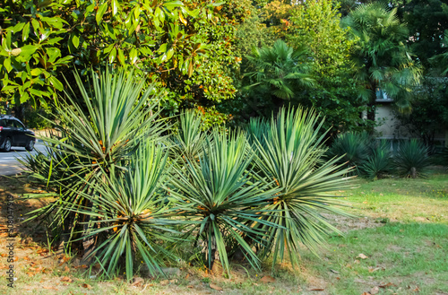 landscape, tropics, bush, yucca, growth, bright, palm, tropical, plant, leaf, summer, beautiful, garden, park, natural, background, tree, nature, green
