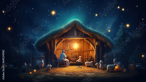 Greeting card of traditional christian christmas nativity scene of baby jesus. Generative Ai