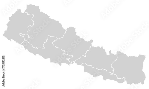 Grey with White Outline Nepal Map with District Borders Asian Country