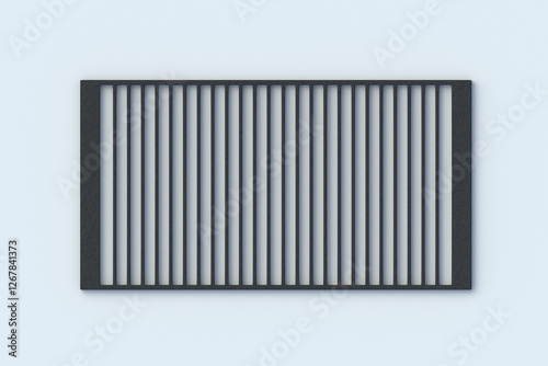 Grill grid on light gray background. Empty rough metal grate for bbq. Picnic equipment. Top view. 3d render