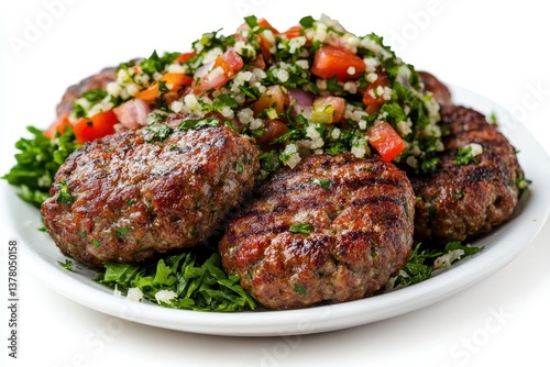 beef, patty, grilled, salad, herb, plate, freshness, meal, cookery, picnic, bar-b-q, garnish, vegetable, parsley, tomatoes, onion, garlic, food, dining, savoury, cooking, eatery, tasty, delicious, dish, homemade, protein, grilling, platter, colours, appetising, epicure, healthy, nourishment, sharing, social, enjoyment, favor, organic, ingredient, presentation, culinary, traditional, lifestyle, comfort