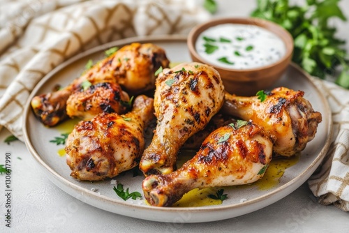Grilled Chicken Drumsticks with Dipping Sauce Plated for Delicious Food Photography