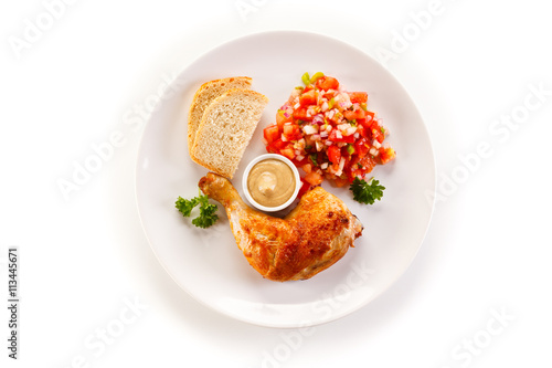 Grilled chicken leg and vegetables