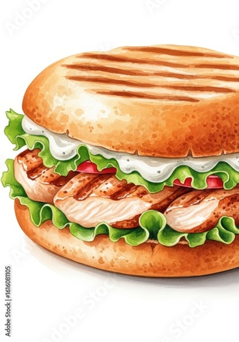 Grilled Chicken Sandwich Delight - Juicy grilled chicken breast, crisp lettuce, ripe tomato, creamy sauce, all nestled in a toasted bun. A delicious meal