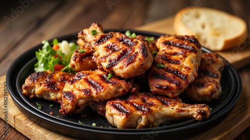 chicken, wing, grilled, food, meat, bar-b-q, plate, dish, meal, dinner, lunch, protein, juicy, crispy, savoury, spicey, hot, delicious, tasty, cookery, gastronomy, cooking, homemade, eatery, menu, epicure, nourishment, diet, poultry, calorie, healthy, unhealthy, indulgence, comfort food, party food, finger food, snack, main course, side dish, garnish, salad, vegetable, bread, platter, serving, presentation