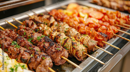 meat, fresh, hygiene, skewer, grilled, herb, tray, chicken, vegetable, bar-b-q, food, cookery, delicious, cooked, platter, dining, meal, epicure, culinary, roasted, savoury, appetising, marinated, assorted, buffet, eatery, serving, wooden, stick, garnish, parsley, juicy, tender, spicey, colourful, variety, tasty, presentation, kitchen, chef, preparation