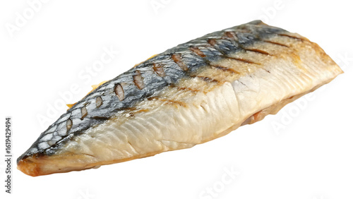 Grilled mackerel fillet isolated on transparent background
