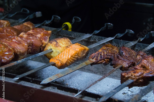 Grilled meat. Grilled fish. Barbecue. Holiday Barbecue. BBQ.
