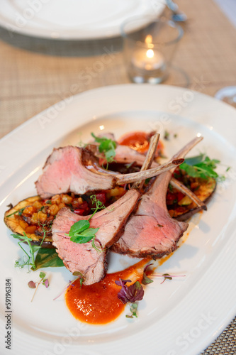 food, plate, lamb, grill, rack, grilled, steak, closeup, roast, dish, porcelain, nobody, fried, chop, brown, eatery, epicure, dinner, piece, rib, tasty, bone, garnish, gastronomy, up high, medium, cookery, cooked, crispy, italian food, meat, sauce, bell pepper, pepper, vegetable, pea, green