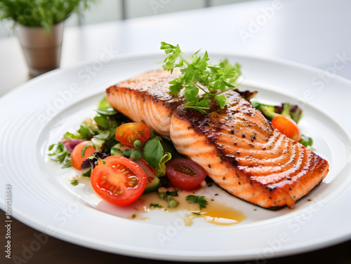 fish, food, grilled, salmon, fillet, fresh, meal, dinner, healthy, lunch, vegetable, background, dish, seafood, steak, cooking, cookery, delicious, diet, epicure, green, grill, lemon, bar-b-q, roasted, eating, plate, nourishment, salad, fried, tasty, tomatoes, wooden, prepared, bar-b-q, lettuce, menu, omega, roast, closeup, filet, table, portion, health, organic, dieting
