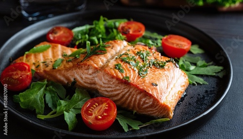Grilled Salmon Steak with Fresh Tomatoes and Greens