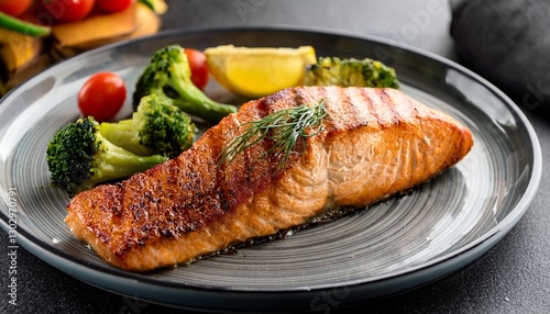 grilled salmon steak with vegetables