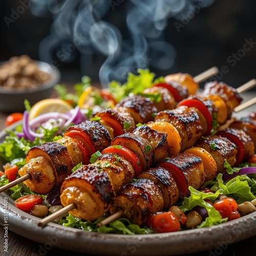 Grilled Skewers with Vegetables and Salad - Delicious Summer Dish