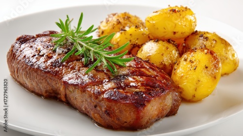 studio shot, steak, rosemary, potato, protein, healthy eating, healthy, appetising, grilled, beef, receipe, nourishment, eatery, roasted, culinary, lunch, meat, food photography, food, fresh, diet, dinner, meal, cooked, plate, epicure, tasty, balanced diet, cookery, culinary arts, delicious, fine dining, gourmet food, meat dish