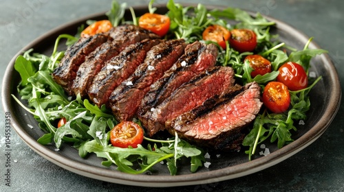 grilled, steak, arugula, cherry, tomatoes, plate, food, cookery, cooking, delicious, meal, fresh, healthy, epicure, eatery, tender, bar-b-q, presentation, herb, seasoning, vibrant, red, green, closeup, dish, nourishment, feast, dinner, lunch, savoury, juicy, succulent, organic, culinary, receipe, summer, ingredient, appetising, share, dining, protein, platter, bar-b-q, comfort, vegetarian, garnish, table, serving