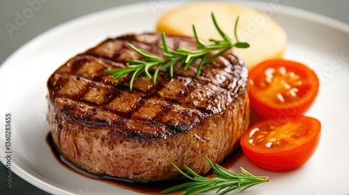 Grilled Steak with Rosemary and Tomatoes, a Delicious Gourmet Meal, Food Photography