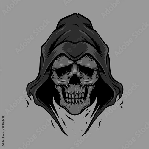 Grim reaper hooded skull head illustration and tshirt design