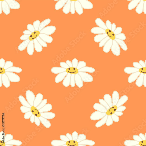 Groovy daisy retro seamless pattern. Positive colorful iilustration. 70s vibe hippie ornament.