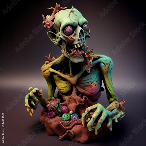 grotesque and horrifying zombie made of polymer clay and play dough - generative AI