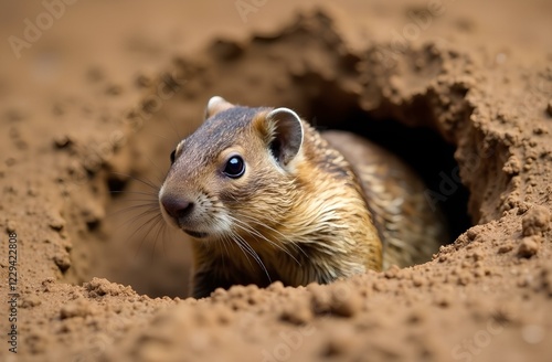Ground squirrel emerging from burrow, natural setting, wildlife concept