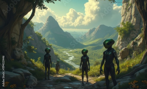alien, science fiction, vale, landscape, nature, fantasy, extraterrestrial, mountain, environment, futuristic, mysterious, exploration, adventure, serene, meditative, curiosity, visitor, biodiversity, environmentally friendly, travel, universe, creature, sky, cloud, scenic, lush, colours, fantasy art, mystical, interaction, perspective, journey, landform, ecosystem, futurism, intrigue, mythical, intergalactic